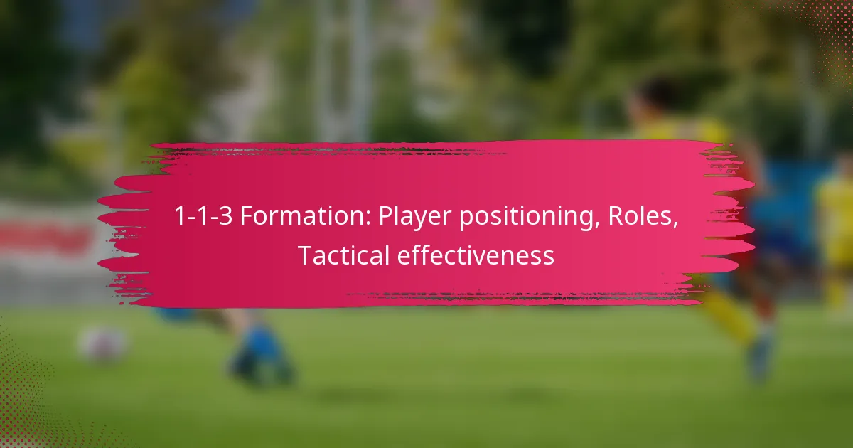 The 1-1-3 formation is a tactical setup that features one player in the back, one in the midfield, and three positioned forward, creating a balanced approach to both defence and offence. This arrangement allows for flexibility in player roles, enhancing teamwork and spatial awareness, which are essential for adapting strategies throughout the game.