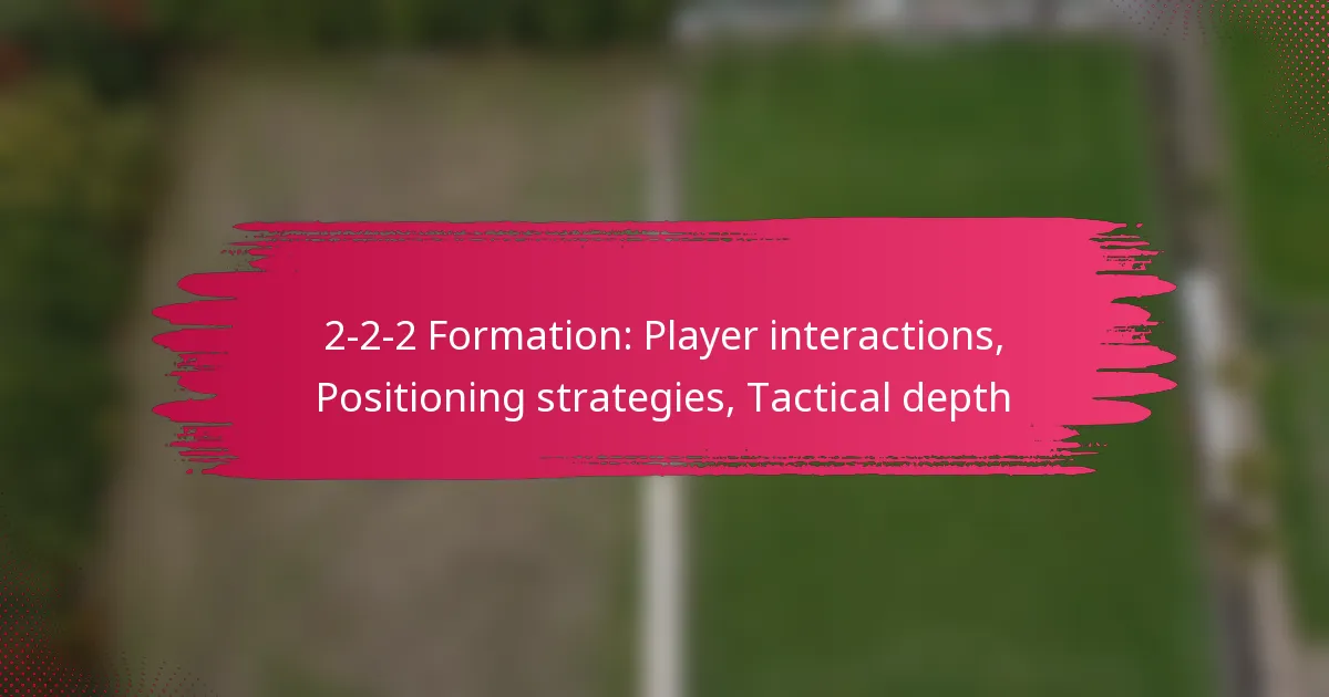 The 2-2-2 formation in soccer is a tactical setup that features two defenders, two midfielders, and two forwards, striking a balance between defence and attack. This formation relies heavily on player interactions and communication, enabling fluid transitions and strategic positioning on the field. By optimising spatial awareness and leveraging player roles, teams can effectively adapt their tactics to counter opponents while maintaining a cohesive structure.